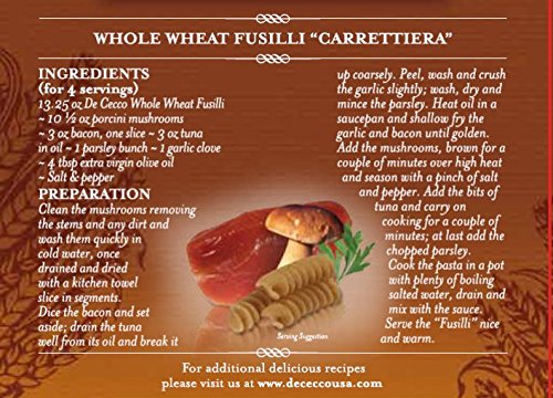 -. Binding : Grocery -. Brand : De Cecco -. Label : De Cecco -. Manufacturer : De Cecco -. ProductGroup : Grocery -. ProductTypeName : GROCERY -. Publisher : De Cecco -. Studio : De Cecco -. Title : De Cecco Whole Wheat Pasta