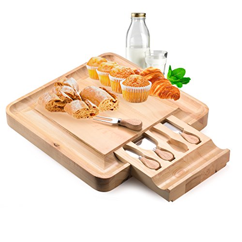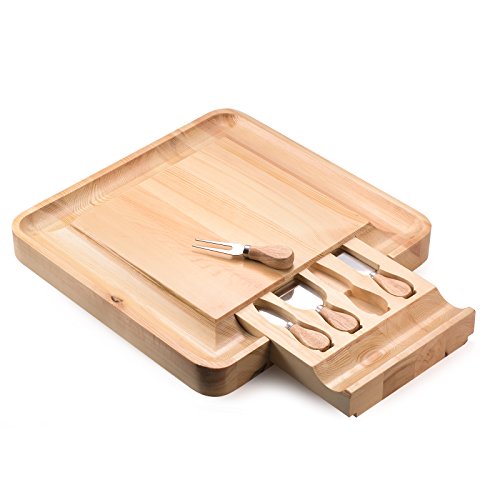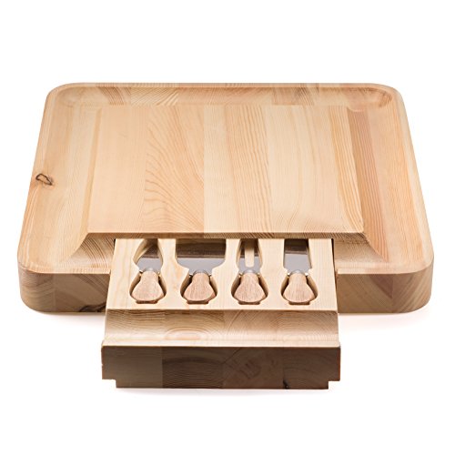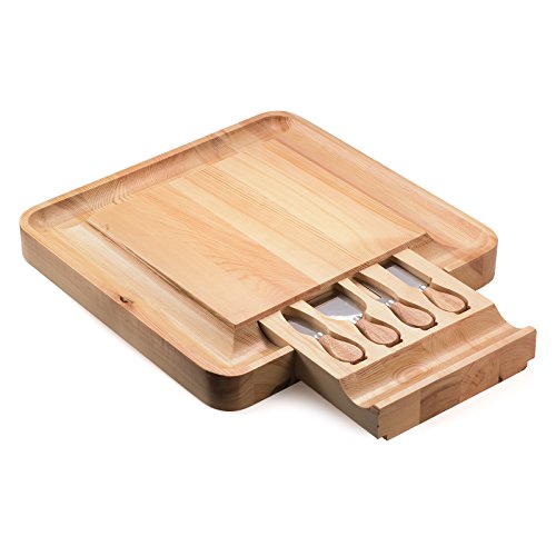Cheese Board Includes Inventive Hidden Drawer with Various Slicing, Spreading & Serving Tools; Perfect Presentation Piece for Holiday Gatherings, Parties & More