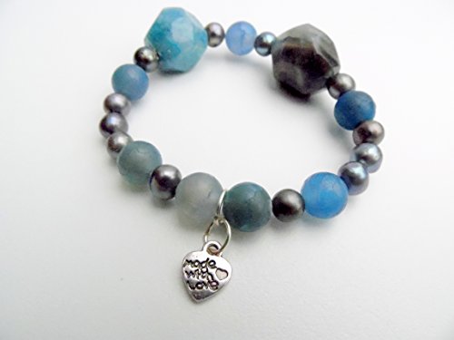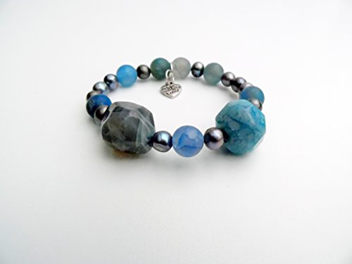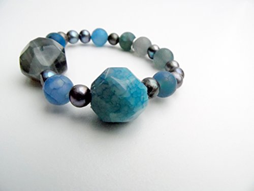 -. Title : Agate and Pearl Stretch Bracelet
