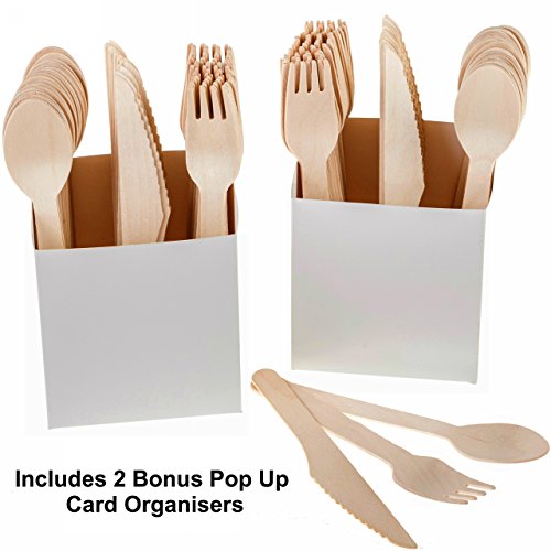 ELEGANT AND EASY TO USE. Your wooden cutlery set will arrive in 3 separate resealable bags with 2 pop up card board organisers for easy and attractive storage and presentation.