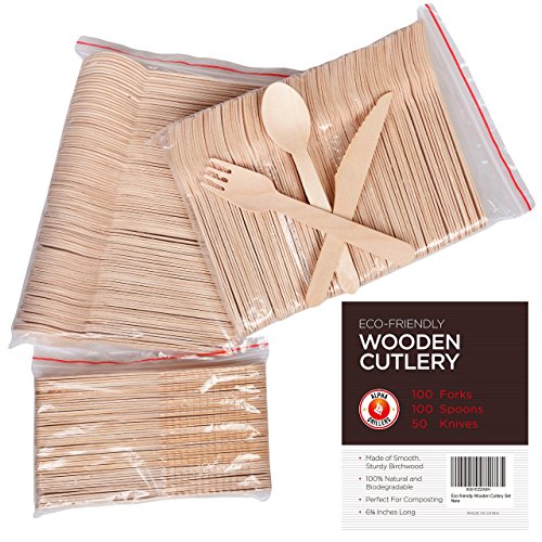 BETTER FOR THE ENVIRONMENT. These forks, knives and spoons are made of nothing but 100% natural biodegradable birch wood. Use once then safely dispose in the trash or add to your compost!