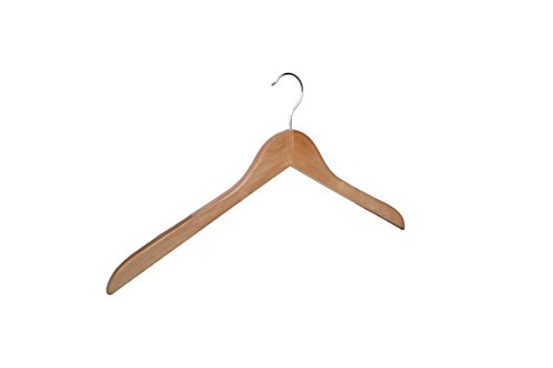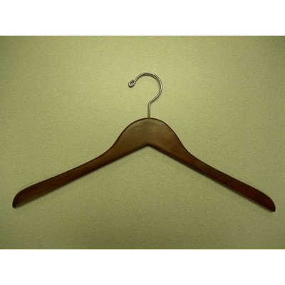 -. Feature : Made of top-quality wood / Includes chrome hook for easy hanging / Contoured design helps preserve the garment's original figure / Choose from available finish options / Dimensions: 17.5L x .5W in.
