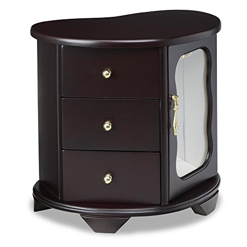 Jaclyn Smith Walnut Glass Door Upright Jewelry Box