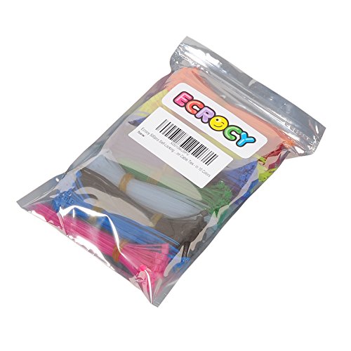 Ecrocy 500pcs Self-Locking Cable Ties - In 10 Colors - 4"
