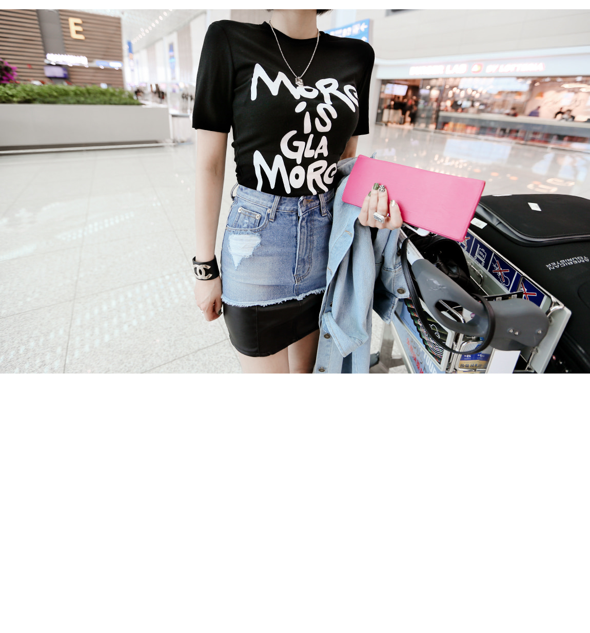 프론트 라인의 레터링으로 트렌디한 포인트를 주었어요