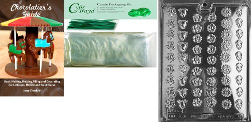 Cybrtrayd MdK25GRBk-F041 Small Assorted Flowers Fruits and Vegetables Chocolate Candy Mold with Chocolatier's Bundle, Includes 25 Cello Bags, 25 Green Twist Ties and Chocolatier's Guide