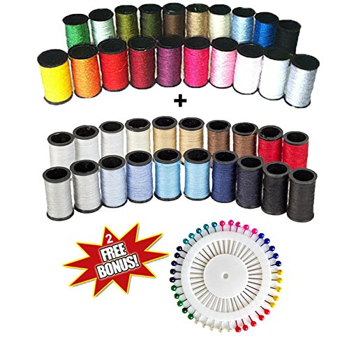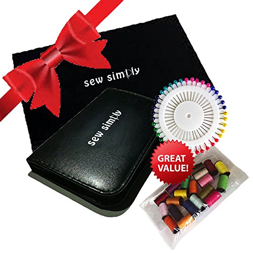 ► SEW SIMPLY TO CHOOSE, #1 best choice High quality DIY travel sewing kit a must have, premium sewing supplies in a compact Zippered durable PU leather Case, EXTRA 40 Quality sewing pins in a round stand & THREAD COLORS THAT YOU REALLY NEED: 38 spools 3 white, 3 black, 2 blue, 2 light blue, 2 brown, 2 beige, 2 red, 2 ivory, 2 gray & 18 multi colors. Great gift for kids and adults, summer camp home and travel