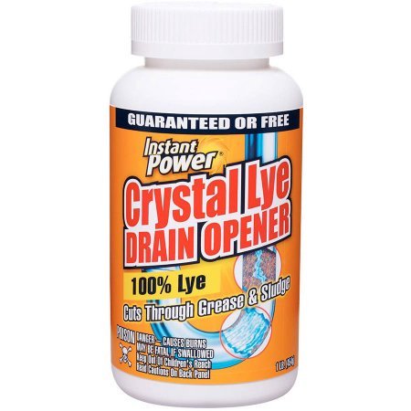 Product DescriptionInstant Power Crystal Lye Drain Opener is a 100% lye formula that quickly and effectively clears the toughest drain clogs.0