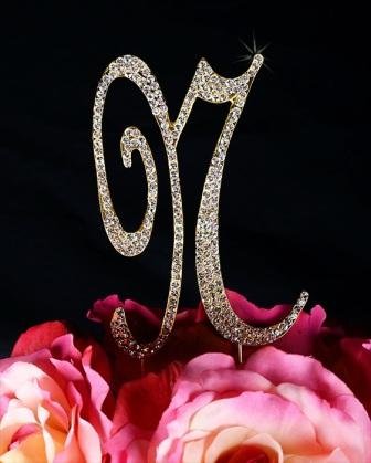 Unik Occasions Sparkling Collection Crystal Rhinestone Monogram Cake Topper - Letter N, Small, Gold