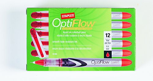 -. Title : Staples OptiFlow¢ Needle-Tip Rollerball Pens, Fine Point, Red, Dozen (15196)