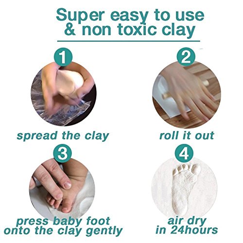 ★[Safe to Use & Non-toxic & 100% Satisfied Customer Service and Money Back Guaranteed]---Includes 100% baby safe no-mess impression material, rolling pin.If you are not satisfied with our hand print and footprint in 1 year, we will refund the money to you without question asked.