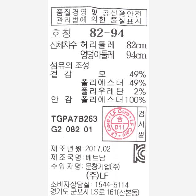 ■ 소재:겉감-모 49% 폴리에스터 49% 폴리우레탄 2% 안감-폴리에스터 100%