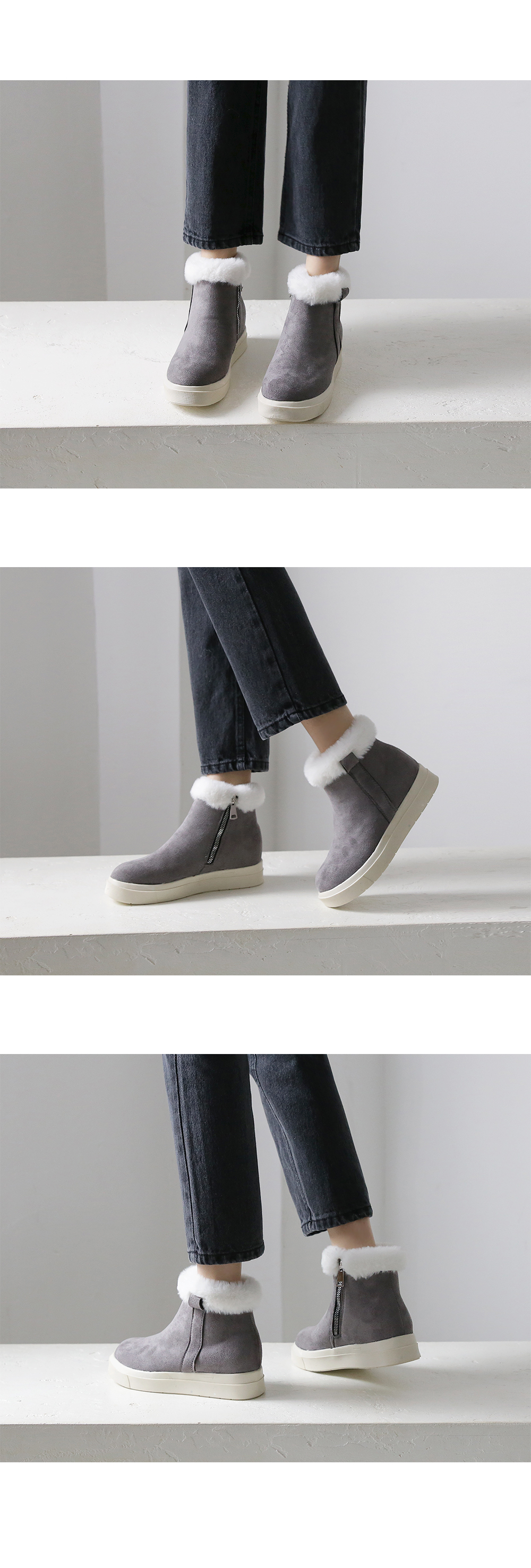 옆 지퍼 장식으로 신고 벗기 편안하고 적당한 굽 높이로 키 높이 효과도 볼 수 있습니다.