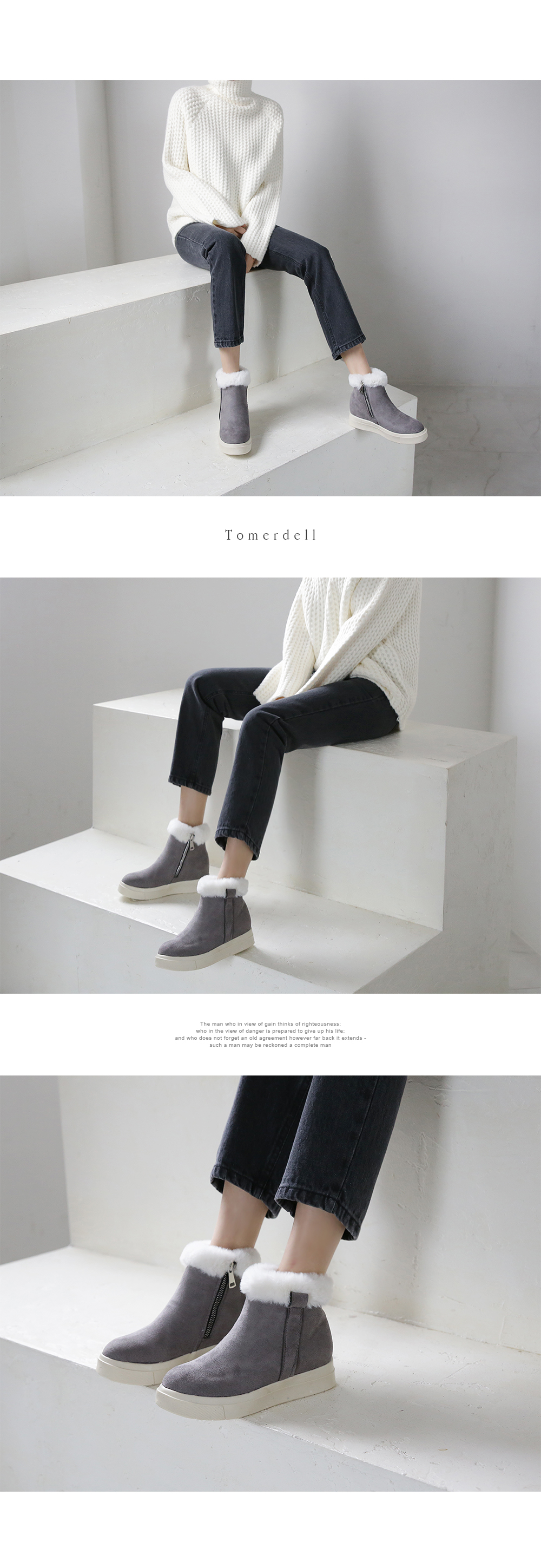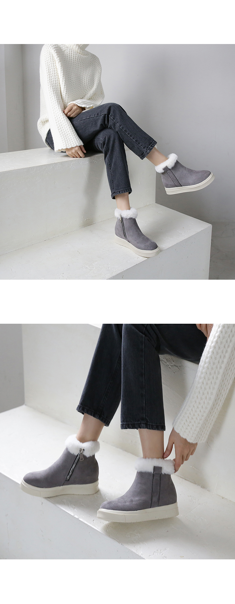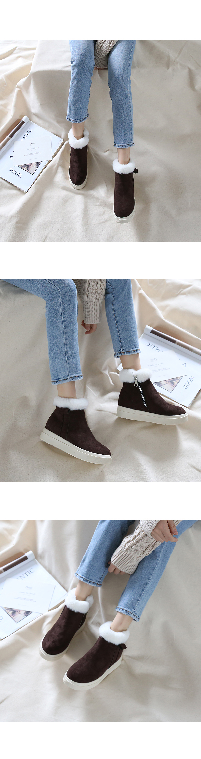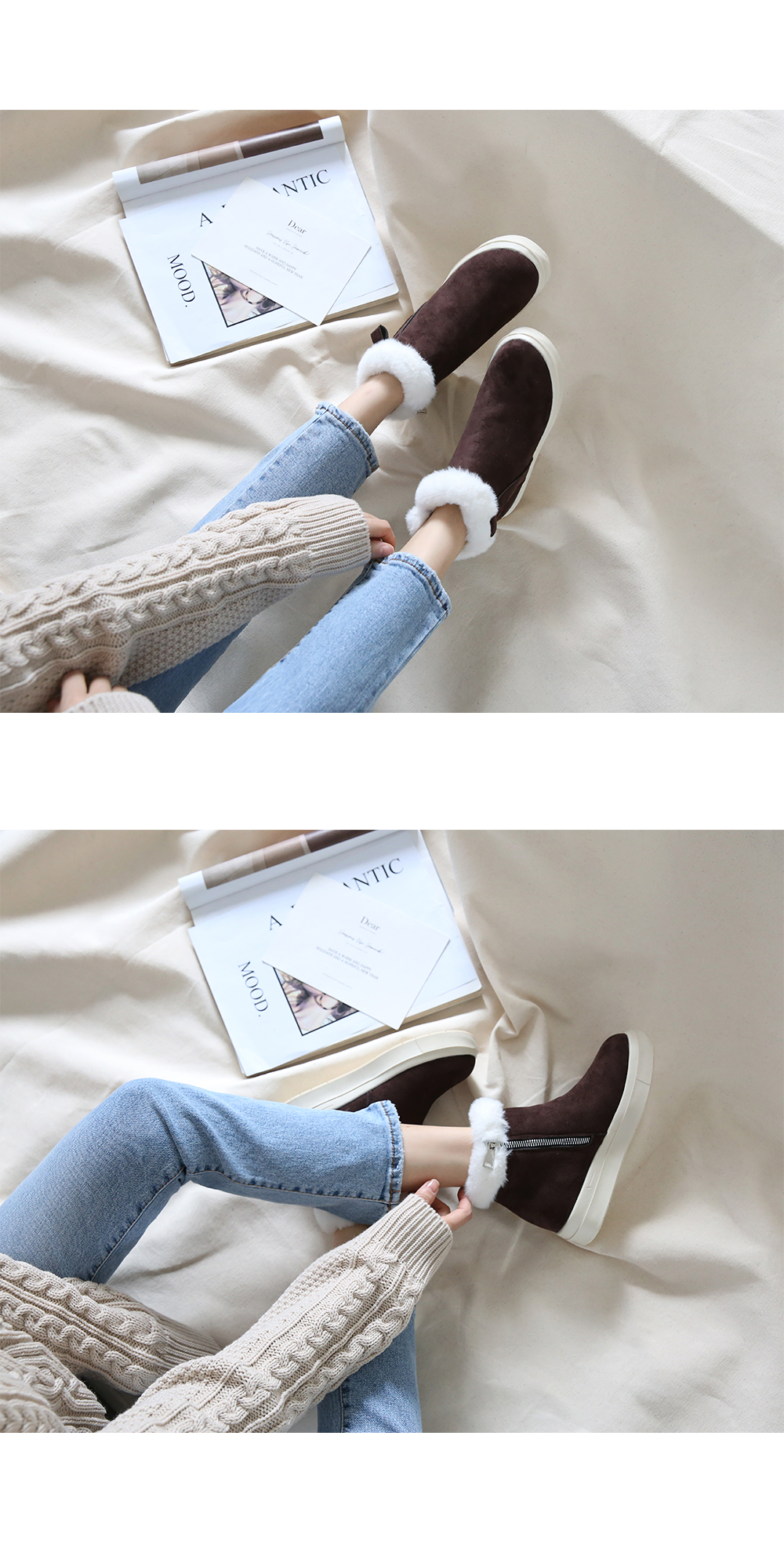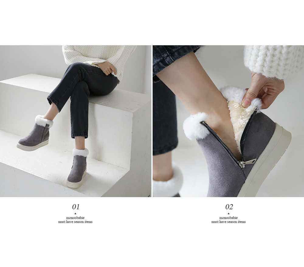 발목 퍼 장식과 퍼 안감으로 한겨울에도 따스하게 착화됩니다.