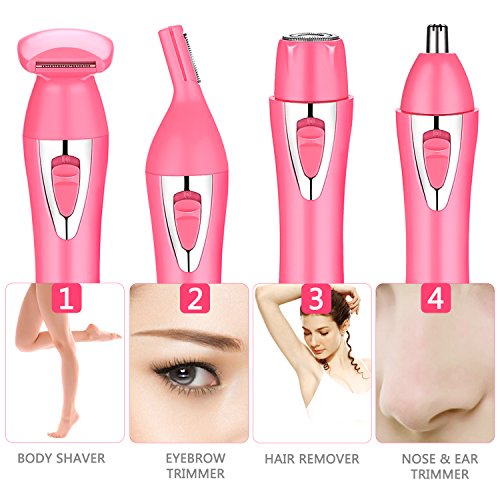 Are you looking for an ultra easy and painless way to remove unwanted facial hair and body / bikini hair? Our 4 in 1 Set - Eyebrow Shaping, Body Shaver, Nose Trimmer, Facial Shaver in ONE. 1.Facial Hair Remover We offers a non-irritating facial hair removal experience. The facial epilator head is easy to use with proven results, and it allows you to precisely remove your facial hair. Get rid of the unwanted hair and peach fuzz on your face. Your complexion will look visibly smooth, clear and fresh. Makeup application will be much smoother and foundation will glide on flawlessly! 2.Body Shaver It is very easy to use to get rid of the unwanted hair on legs, underarm, and bikini line. It has an ergonomically shaped head for comfortable use. 3.Eyebrow Trimmer For trimming and shaping eyebrows, two precision, snap-on eyebrow shaper combs are included to easily and expertly trim eyebrows to your perfect length and style. 4.Nose Ear Trimmer The Nose Trimmer allows you to safely trim nose, ear, and even stray facial hair. The dual-edge blades rotate up to 360° for neat grooming from both the top and sides without pulling the hair. Painless Hair Remover comes in a compact and portable size for you. It makes a great gift for friends and family. ? ?Backed by a 100% RISK FREE Money Back Guarantee! If you are not completely satisfied with our Precision Trimmer, we will give you a full refund. 0 |