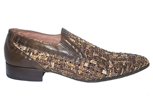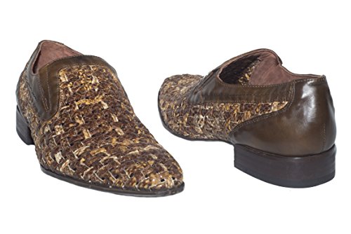 Carlo Ventura 2475 Italian mens brown leather and piton loafers