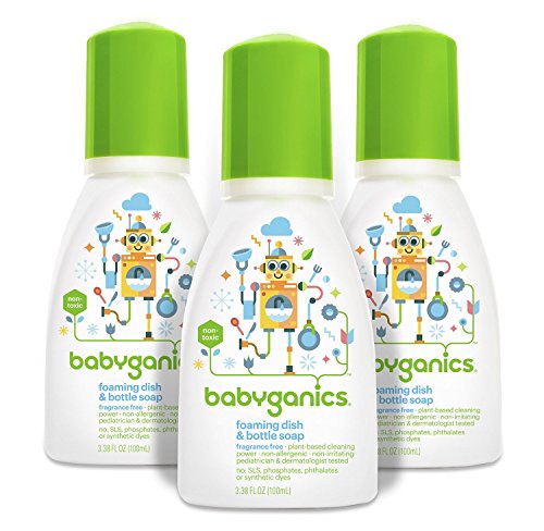 -. Title : Babyganics Foaming Dish and Bottle Soap, Fragrance Free, On-The-Go 100ml (3.38oz), Bottle (Pack of 3)