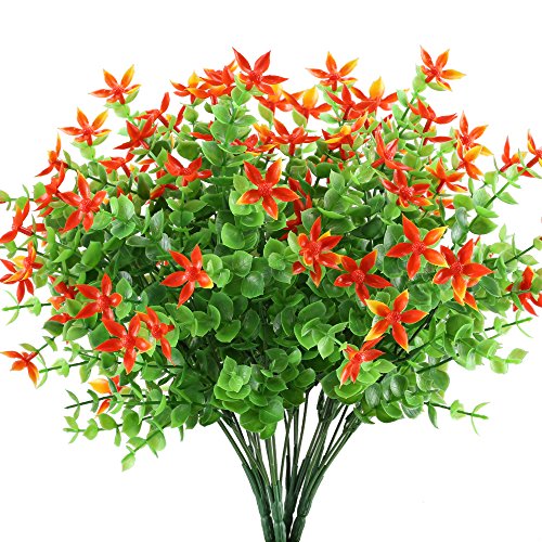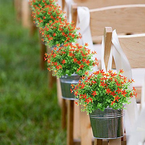 Artificial Fake Plants, Hogado 4pcs Faux Greenery Shrubs Simulation Plastic Bushes Indoor Outdoor Hanging Planter DIY Wedding Balcony Decor Orange