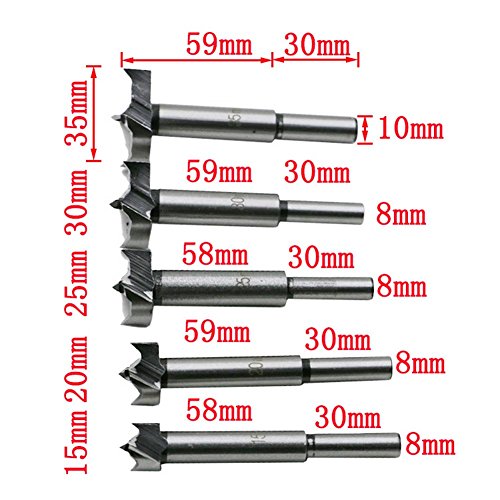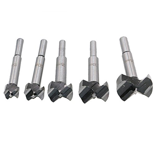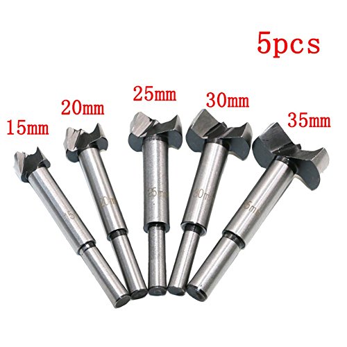 Forstner Drill Bit, Your Supermart 5Pcs 15mm-35mm Carbon High Speed Steel Woodworking Hole Saw Set Auger Opener Drilling Wood Plastic Plywood with Round Shank