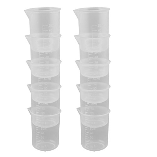 uxcell Plastic Capacity Measuring Cup Beaker Laboratory Set 50ml 10 Pcs Clear