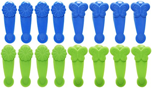 Set of 16 Large Magnetic Fun Clips! Butterfly and Flower Clips! Strong Beautiful Blue and Green Clips! Large Bag or Refrigerator Clips Perfect for Kitchen Food Storage or Organization!