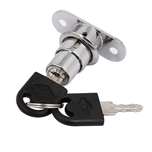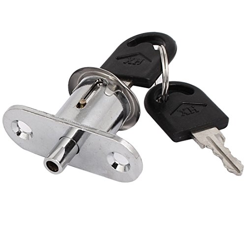 -. Feature : Product Name : Drawer Lock;Plunger Head Size : 1.3 x 1.6cm / 0.51" x 0.63" (D*L);Mounting Hole Dia. : 5mm / 0.2" / Mounting Hole Center Distance : 40mm/1.6";Base Size : 49 x 19 x 2mm/2" x 0.75" x 0."(L*W*T) / Total Height : 39mm/1.6";Color : Metal / Material : Silver Tone, Gold Tone;Net Weight : 54g / Total Weight : 58g;Package Content : 1 x Drawer Lock2 x Keys