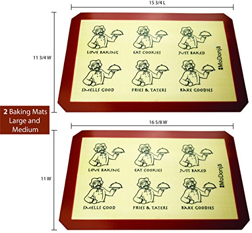 Silicone Baking Mats by Modonja set of (2) Cute Red Large and Medium Baking Sheets - Reusable and Non-Stick Food Grade for Cookies and Other Baking Recipes - Non-Toxic Heat Resistant Bakeware Liners