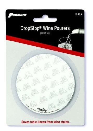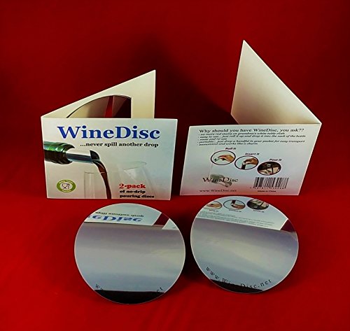Studio : Home Bar Source Publisher : Home Bar Source Product Description This reusable thin, flexible silver foil mylar disc is used to protect table linens from drip stains incurred during the pouring of wine. The disc is rolled up and inserted into the bottle neck before pouring. 3" Diameter. FDA approved food-safe. Includes two discs. Hand-wash in lukewarm soapy water. Not dishwasher safe. 0