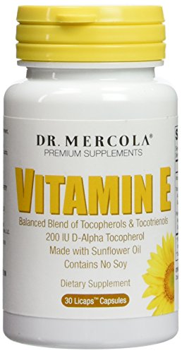 -. Title : Dr. Mercola Vitamin E - Balanced Blend Of Tocopherols And Tocotrienols - Made With Sunflower Oil - Contains No Soy - 200 IU D-Alpha Tocopherol - 30 Capsules