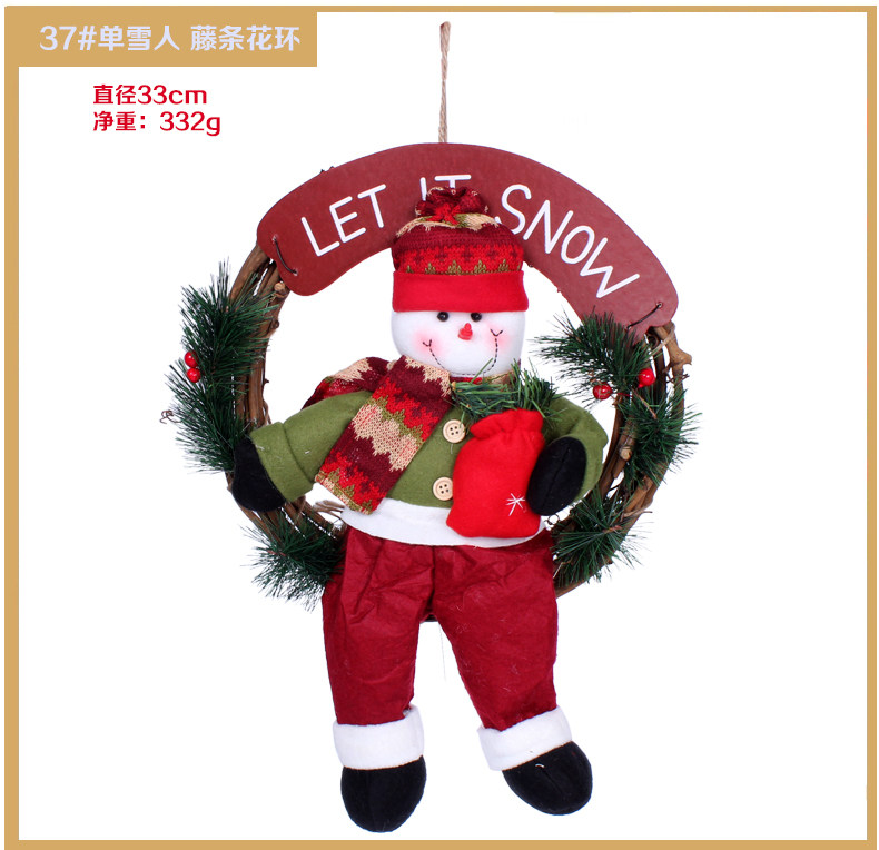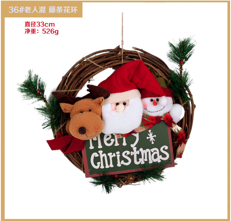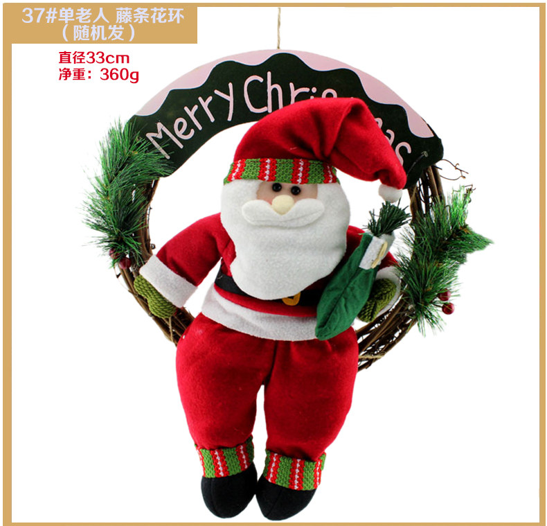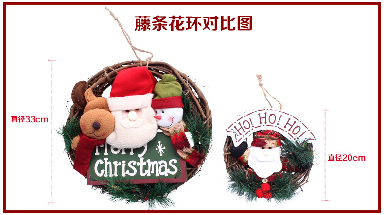 千奇坊 圣诞节装饰品用品 圣诞雪人圣诞老人圣诞花环 藤条花环