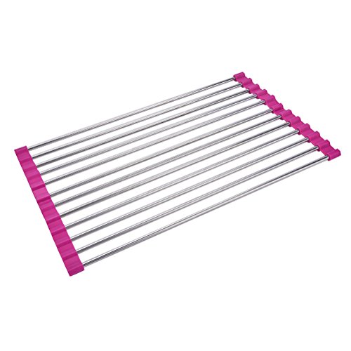 -. Feature : Material: Stainless Steel,Silicone / Size: 37cm * 23cm * 1cm / 14.6" * 9" * 0.4" / Our dish rack is made with premium grade stainless steel, No Rust,No Corrosion. / Unroll the dish rack over the sink to provide you more space for your dishes, glassware or pots and fruit and so on. Rolls up for easy storage / Dry your dishes without using up valuable counter space. Drain juices and water directly into your sink.