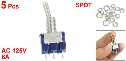 Uxcell a12072300ux0597 Single Pole Double Throw SPDT On/On Toggle Switch, 5 Piece, AC 125V, 6 Amp