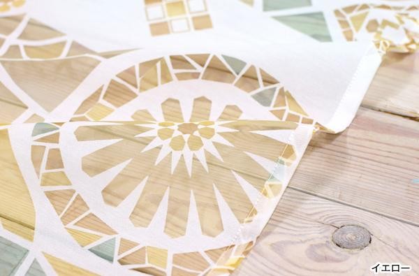 ガウディの作品「グエル公園」のモザイク模様をイメージしました。オパール加工によりポリエステルの部分だけを残して透かし柄を描いています。 |