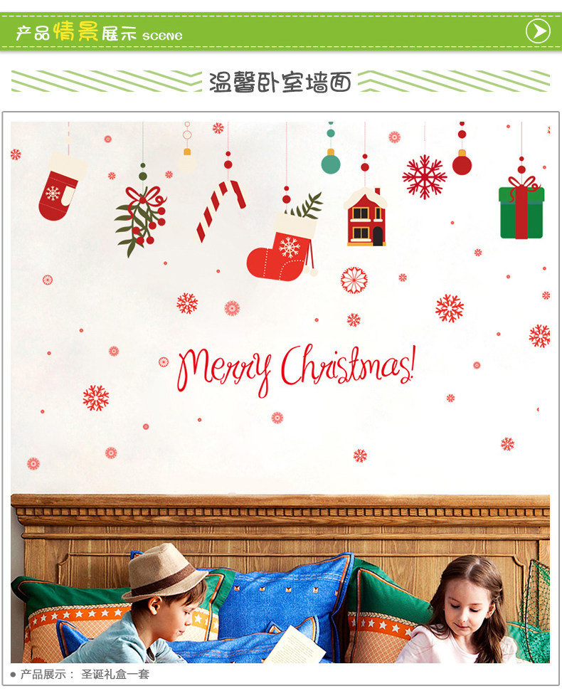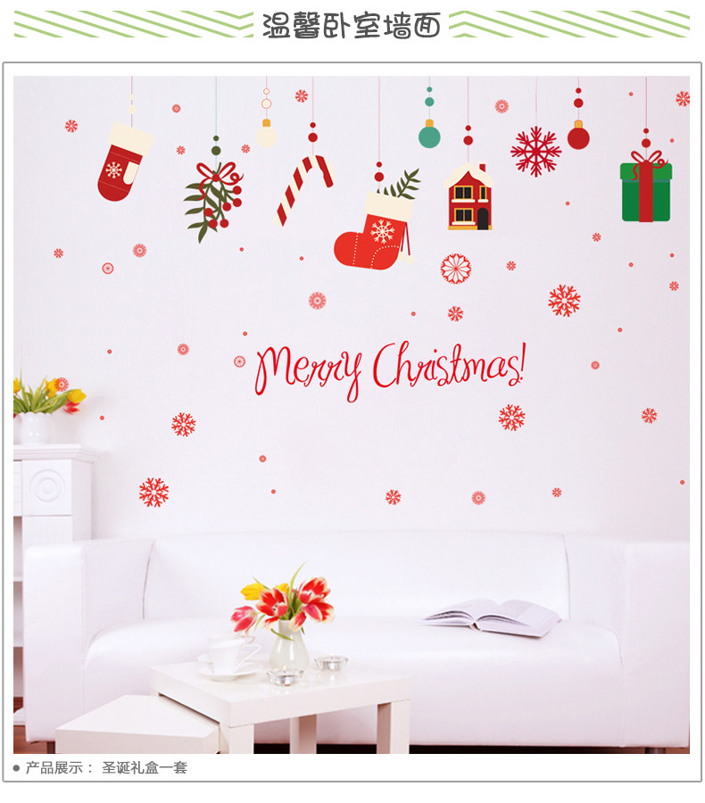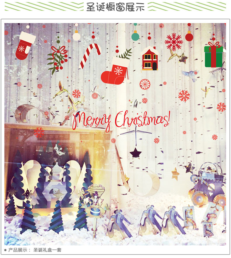 圣诞节贴画圣诞袜礼物贴纸橱窗贴纸玻璃门贴店铺装饰自粘墙上墙贴