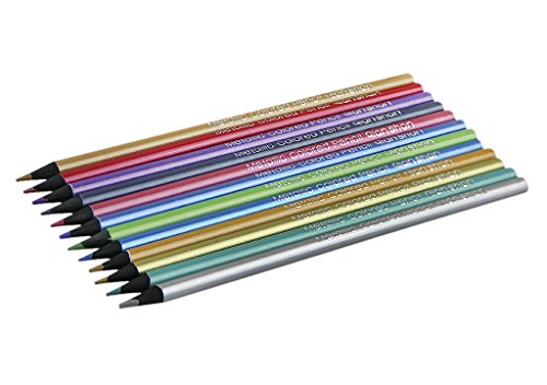 Premium Quality Metallic Pencils 12 Colors Non-toxic Black Wood Colored Pencils Set for Kids Adults Art Drawing, Coloring, Sketching