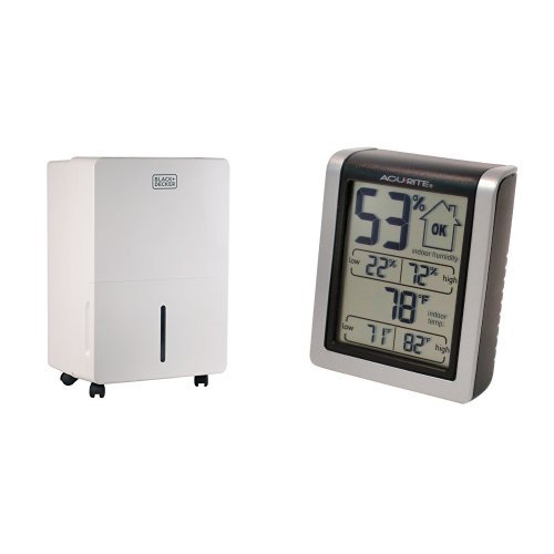 BLACK+DECKER BDT70PWT 70 Pint Portable Dehumidifier with Built-in Pump, White and AcuRite 00613 Indoor Humidity Monitor Bundle