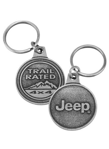 -. Feature : Official Licensed Jeep Gear / Available in antique silver / Jeep logo molded on one side / Trail rated 4x4 bage on one side / 28mm split ring, 1'' x 2''
