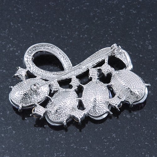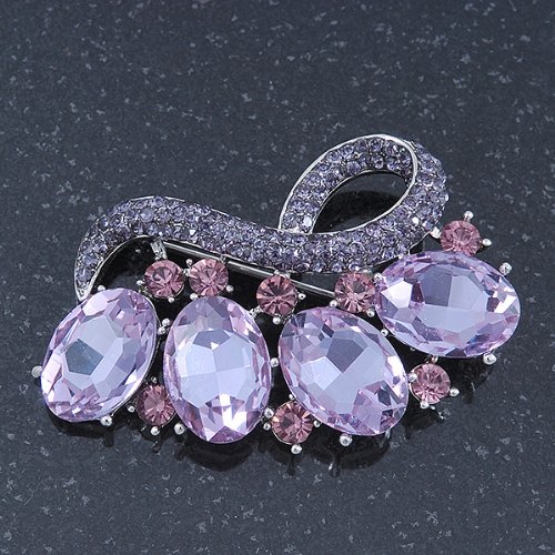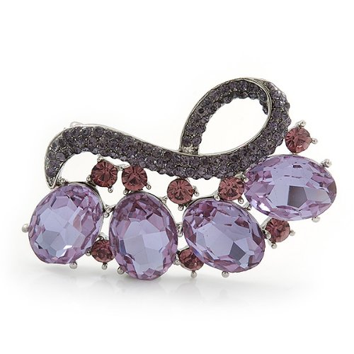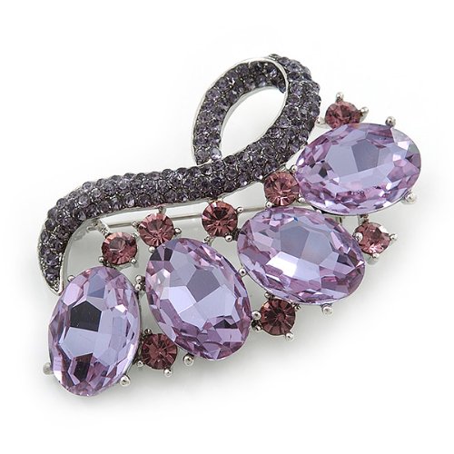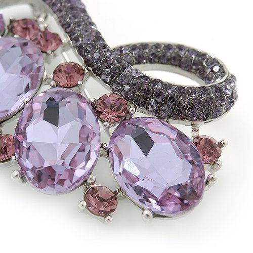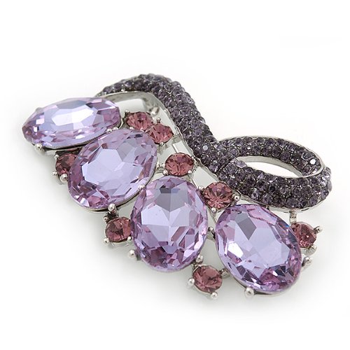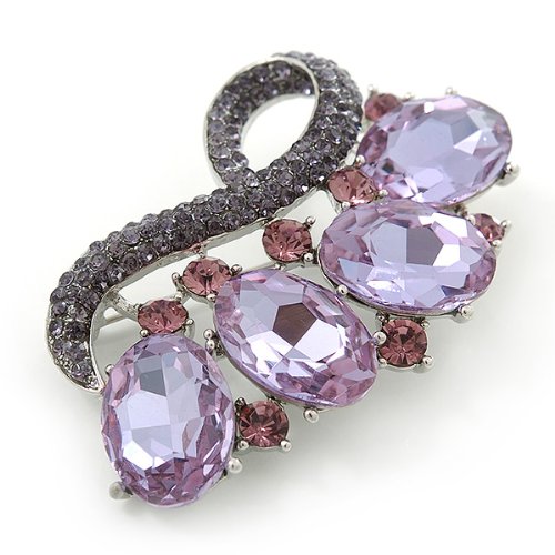 -. Title : Contemporary Amethyst Oval Glass, Lavender Crystal Brooch In Rhodium Plating - 60mm Across