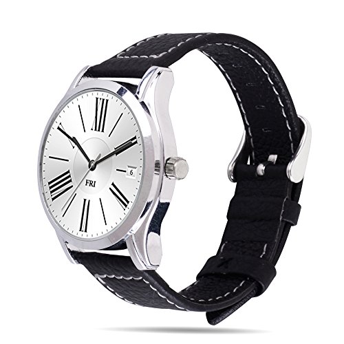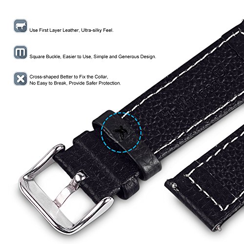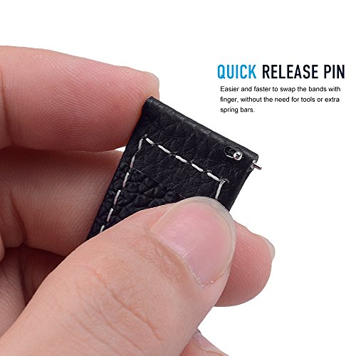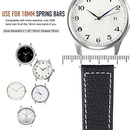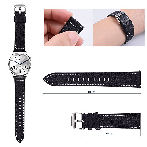 Quick Release 18mm 20mm Watch Band, Fullmosa Genuine Leather Replacement Strap Compatible with Huawei Watch Samsung Gear S2 Moto 360 2nd Gen 1.45 inch Asus Zenwatch 2 with Metal Clasp,Black