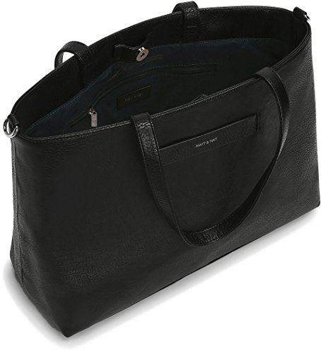 Tote that can be worn crossbody with adjustable and removable strap. Magnetic snap closure. Interior compartments separated by large zippered pocket. Detachable zippered pouch connected by strap. Fits 15" laptop. INTERIOR: 2 zipper pockets, logo-embossed Dwell tag. 100% recycled nylon lining. POUCH INTERIOR: 3 card slots.Feature