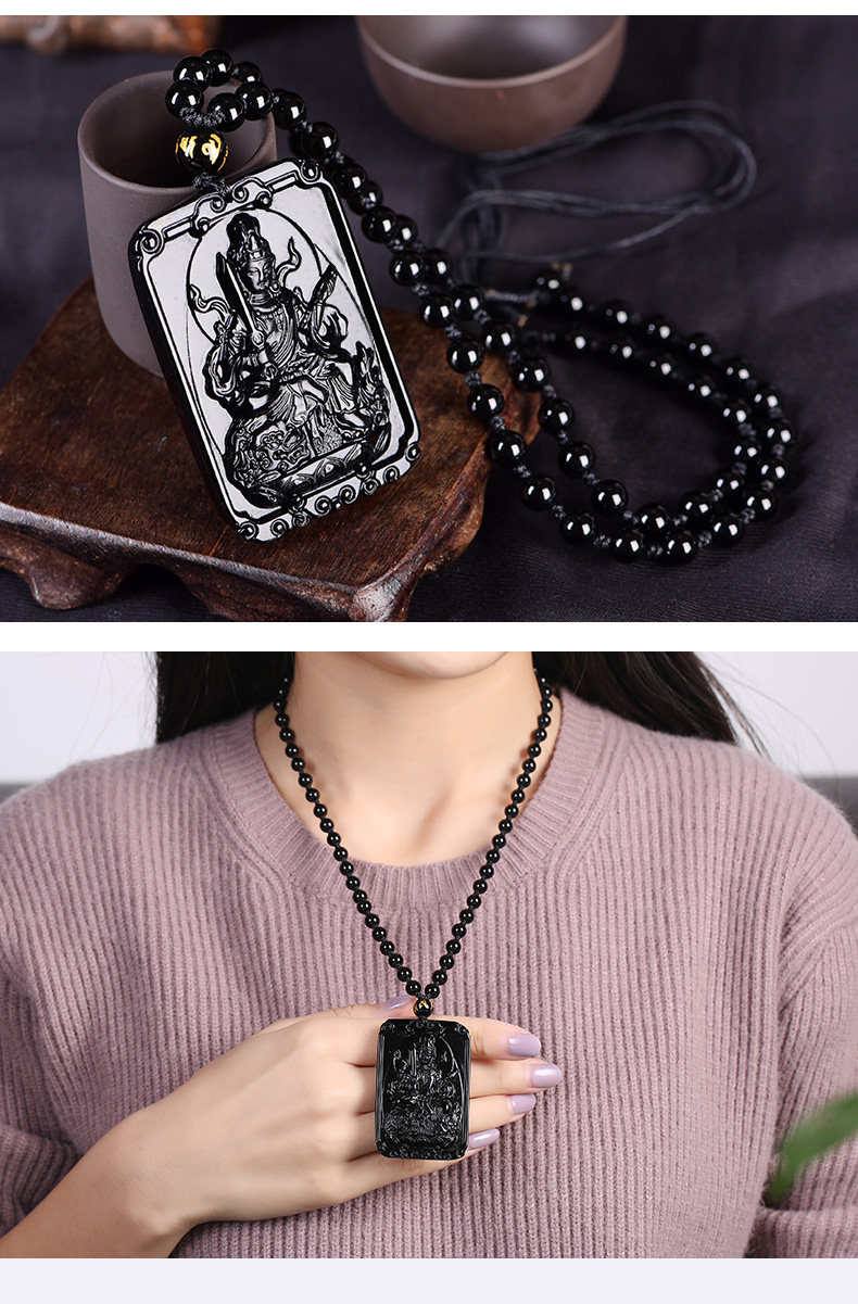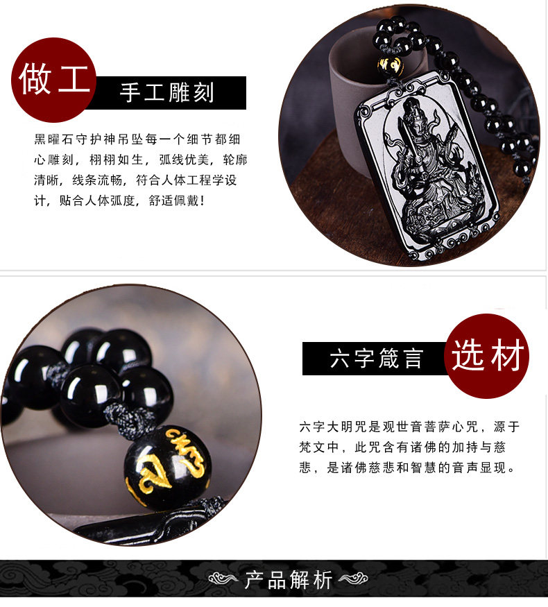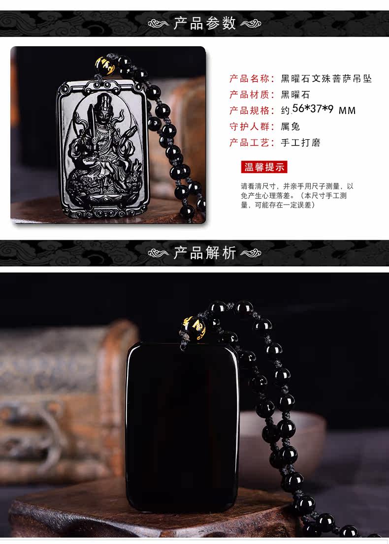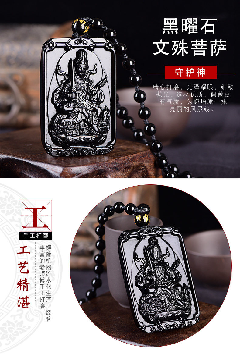 黑曜石生肖本命佛属兔守护神吊坠文殊菩萨平安项坠礼品