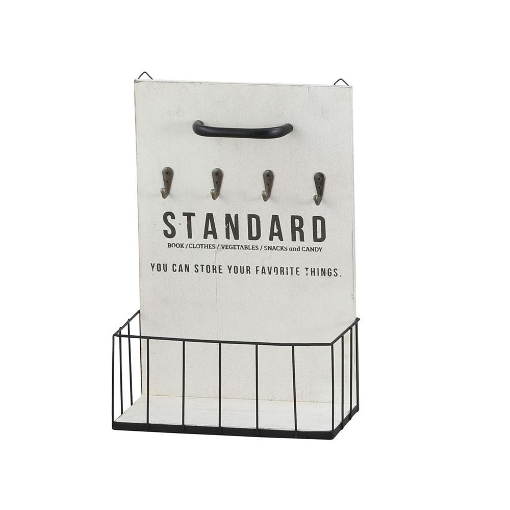 素朴ながらカジュアルにデザインされたプリントとブラックの金具部分がポイントです♪ 製造国:中国 素材・材質:MDF、アイアン 商品サイズ:W24×D11×H34.5cm 仕様:耐荷重:1kg ※サプライヤー直送品 ご注文後2~3営業日後の出荷となります【商品名】アビテ(Habiter) スタンウッド・ウォールシェルフ YI-002-WH