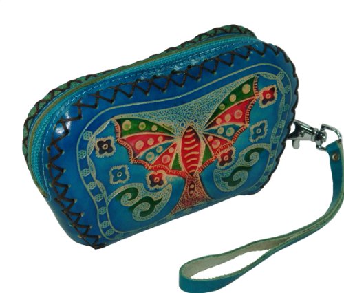 -. Brand : BPLeathercraft -. Department : womens -. Feature : Use the choice genuine, special-tanned cowhide. / Made by the special 3D leather produce techniques. / 100% Hand-Made by our master leather craftsmen / A great ideal for a unique top grade gift for all seasons. / Not sale in any retail store!! -. ProductGroup : Apparel -. ProductTypeName : HANDBAG -. Title : Designer Genuine Leather Wristlet Purse, Blue Base with Butterfly and Flower Pattern