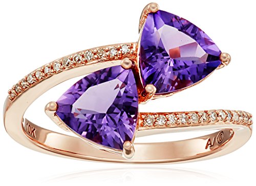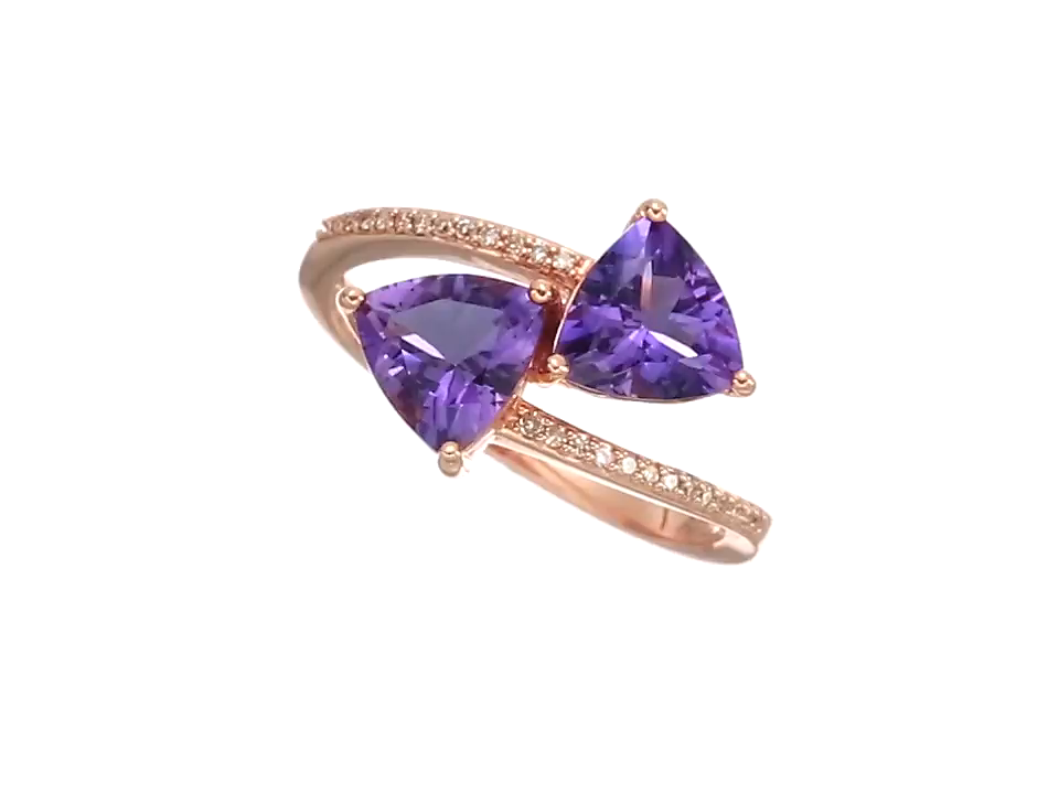 10k Rose Gold Two Stone Trillion with Diamond Accent Ring, Size 7