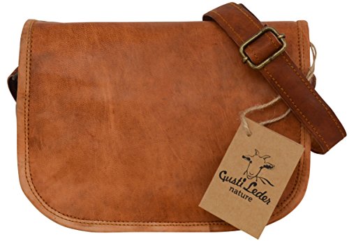 Umhangetasche Leder Gusti Leder nature Summer 7,9 Handtasche Tablettasche 7,9 Vintage Ledertasche Abendtasche Partytasche Disco Damen Freizeittasche Klassiker Klein Braun H18