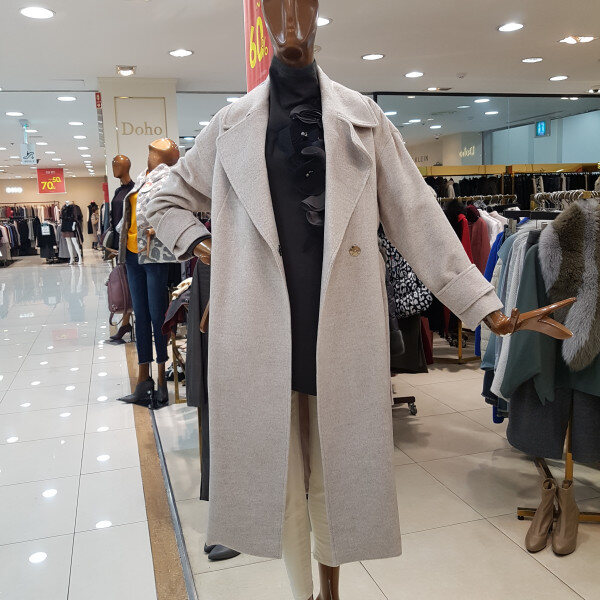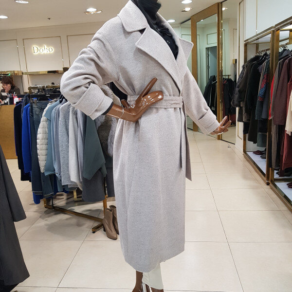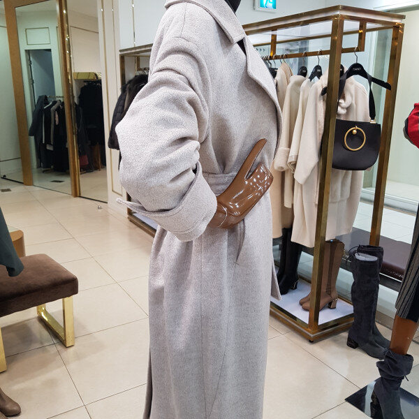 기본 솔리드 롱코트로 벨트로 스타일 연출이 되는 디자인입니다.