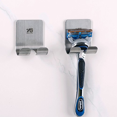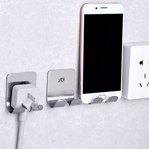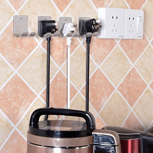 Razor Holder Plug Holder Hook with Self Adhesive - Brushed Stainless Steel (4 Pack)