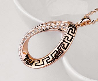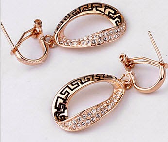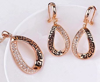 Classic Retro Pattern 18K Rose Gold Plated Jewelry Necklace Earrings Set Rhinestone Made with Austrian Crystals