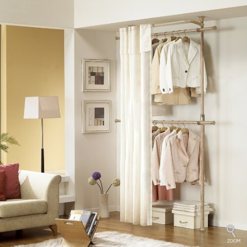 Premium Wood Colored 2 Tier Hanger with Curtain | Clothing Rack | Closet Organizer