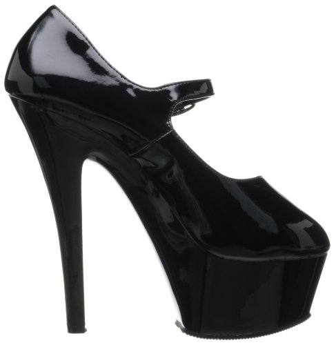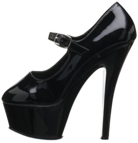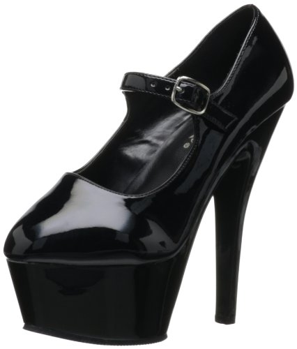 Amazon.com Product Description This ultra-sexy Kiss-280 pump from Pleaser combines an innocent school-girl look with a very adult sexiness. The outrageous heel and thick platform add alluring height, while the sleek mary-jane strap ensures a snug fit while you're traipsing about town.